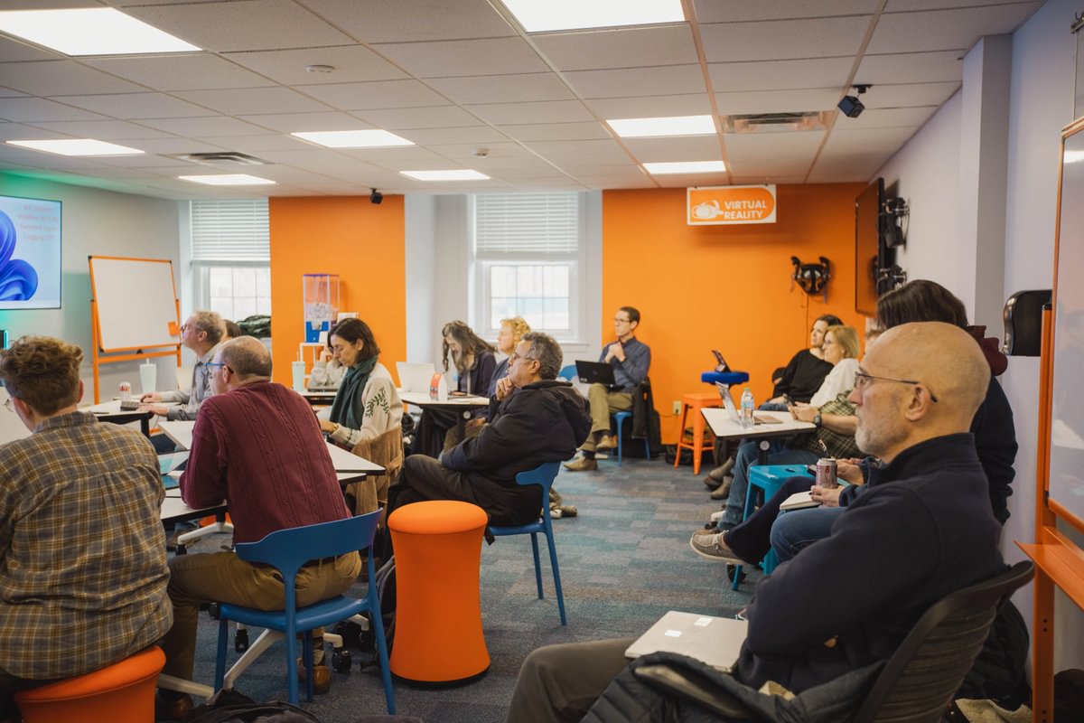 During the afternoon, participants journeyed to the AI and Media Lab in the Plank Gym basement to engage in several AI showcases. Topics presented during the showcases included Moodle AI tools, AI use in the humanities, and AI image and video creation.