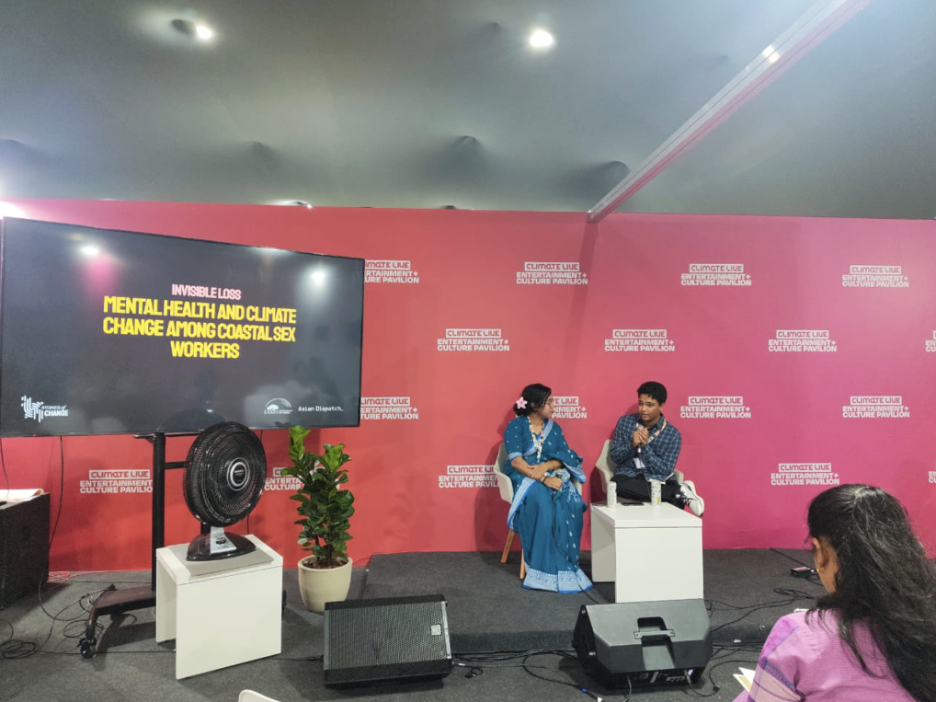 This past summer, my colleague on the project, Usraat Fahmidah, and I received a fellowship from the Earth Journalism Network along with a grant that allowed us to document non-economic loss and damage, focusing specifically on the mental health impacts of climate change on a coastal brothel community. The resulting report and short documentary served as the foundation for the dialogue I aimed to create at this conference.