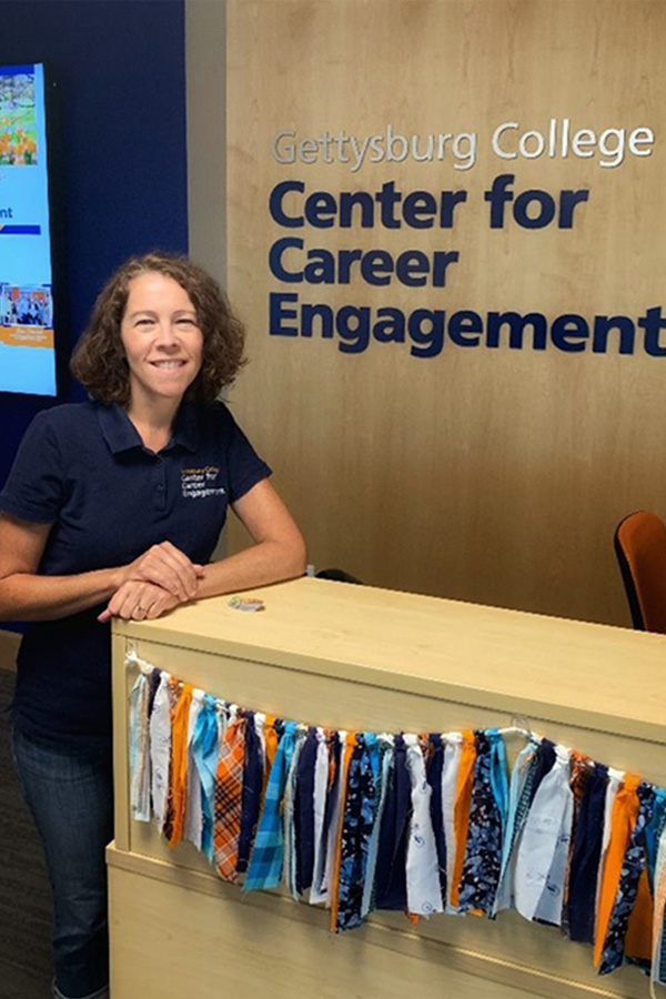 In the role of Career Counselor, Kim has the opportunity to interact with students on a daily basis. Whether in a one-on-one meeting, presentation or programming event, she seeks to provide students with the information, resources and support to navigate their career path. She highly values the aspects of her job that allow her to build relationships with students, staff, faculty, parents and friends of Gettysburg College.